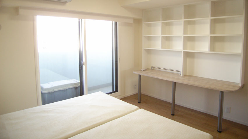 北側洋室は、断熱改修も行いエコカラットとのコラボで快適な空間ができました。夫婦並んで使えるデスクを作り付けで設置しました。